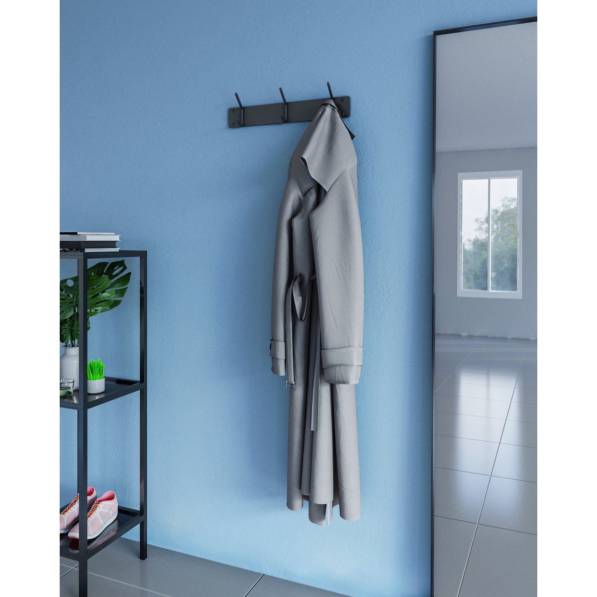 De kapstok is vervaardigd uit hoogwaardig staal en is duurzaam in gebruik. Door het stevige bevestigingssysteem en de sterke dubbele haken heeft de kapstok een hoge draagkracht. Met het meegeleverde bevestigingsmateriaal monteert u de wandkapstok eenvoudig en snel aan de muur. Binnen enkele minuten creëert u een stijlvolle en praktische oplossing voor uw hal of kamer.