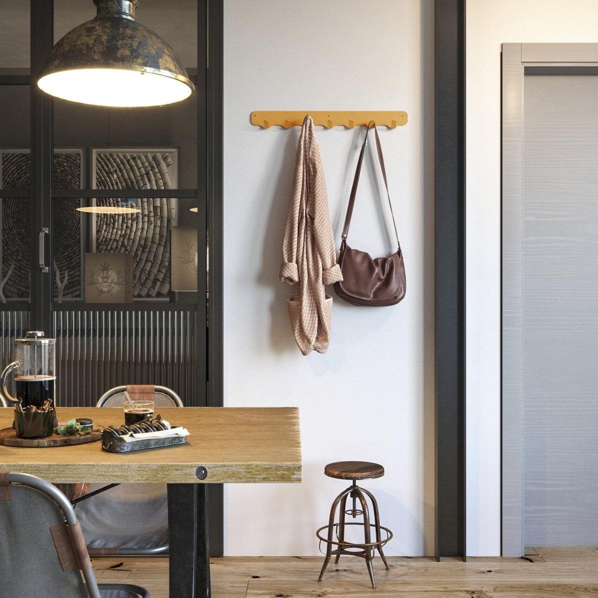 De Rounded Seven wandkapstok combineert een strak design met een robuuste industriële uitstraling. Dankzij het tijdloze ontwerp is deze kapstok geschikt voor iedere ruimte, van hal tot slaapkamer.