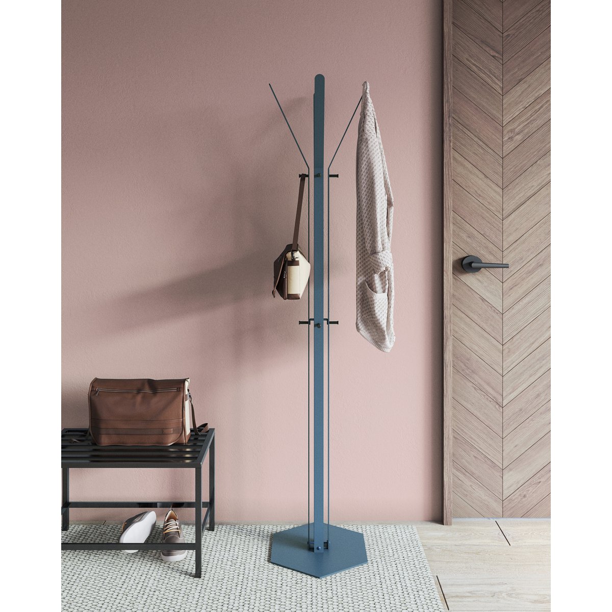 De kapstok is gemaakt van hoogwaardig staal en staat op een stevige zeshoekige poot, wat zorgt voor optimale stabiliteit en een hoge draaglast. Hierdoor is hij niet alleen stijlvol, maar ook uiterst duurzaam en geschikt voor dagelijks intensief gebruik. Een echte eyecatcher die elke hal of kamer compleet maakt.